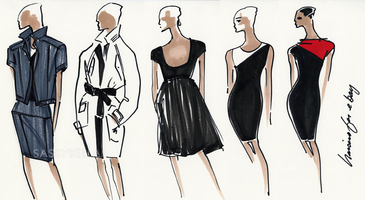 We saw the looks from Narciso Rodriguez’s collaboration with eBay last Friday thanks to WWD, but were lucky enough to be sent the sketches of five of the looks from Rodriguez’s first-ever capsule collection. It’s so rare to find a designer who sketches these days, I’m convinced that it’s a dying art form so I’m fascinated by the sweeping pen on a piece of paper that takes the shape of a figure in an imaginative look.