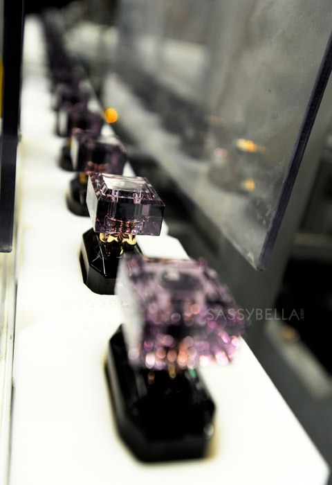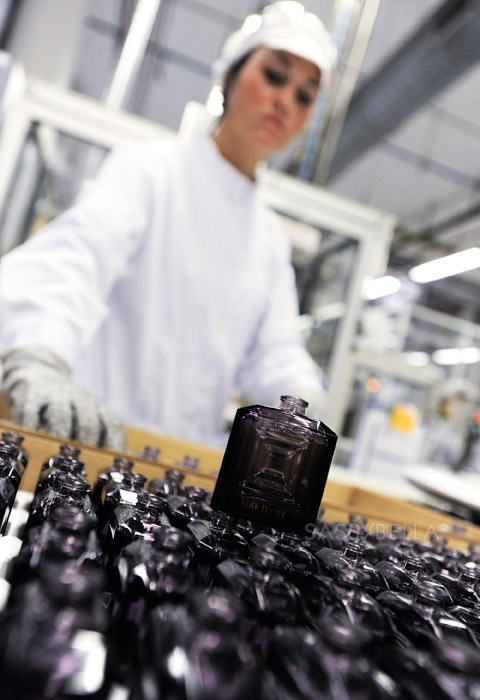 It seemed to be a rather productive visit with Moss and Völkl filming a series of interviews about their creative process and the Warhol inspired black and white image. Musk was reportedly central to Vintage Muse due to Moss’ preference to the scent. The Coty factory visit was completed with a group photo with the factory team and the signing of the first Vintage Muse bottles off the production line.