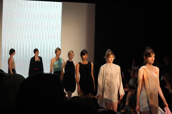 Arnsdorf took a lighter turn for their “The Circle” Spring/Summer 2011-12 season with fresh white palette with touches of a fresh mint green, bright fuschia, black and a muted pastel gradient. It was a looser collection with newfound movement from Jade Sarita Anott.